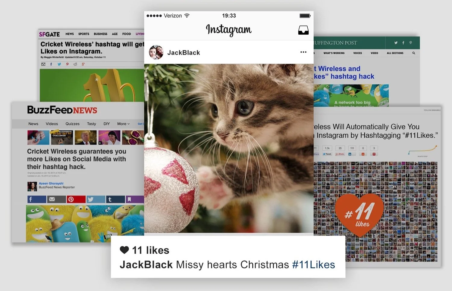 So we created a social hack. Cricket Wireless left no one unloved, giving anyone on Instagram eleven more likes who hashtagged "#11Likes" thus catapulting you into social media popularity. That's certainly something to smile about.
